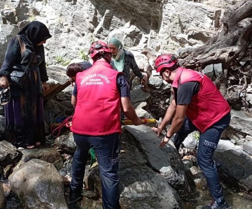 Balıkesir’in Edremit ilçesinde kanyonundaki kayalıklardan düşen turist kadını itfaiye ekipleri kurtardı.