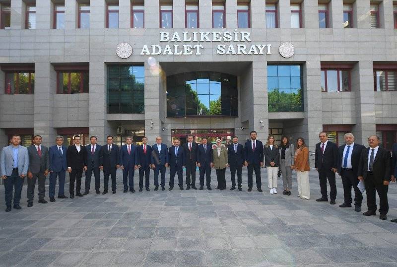 Adalet Bakanı Yılmaz Tunç ile Vali İsmail Ustaoğlu, AK Parti Genel Başkan Yardımcısı Balıkesir Milletvekili Belgin Uygur, Balıkesir Milletvekilleri İsmail Ok, Ali Taylan Öztaylan ile birlikte, Balıkesir Adliyesi'nde Cumhuriyet Başsavcısı Abdulkadir Akın, Adli Yargı İlk Derece Mahkemesi Adalet Komisyon Başkanı Mehmet Soner Sağıroğlu ve Baro Başkanı Av. Hakan Topaloğlu'nu da ziyaret etti.