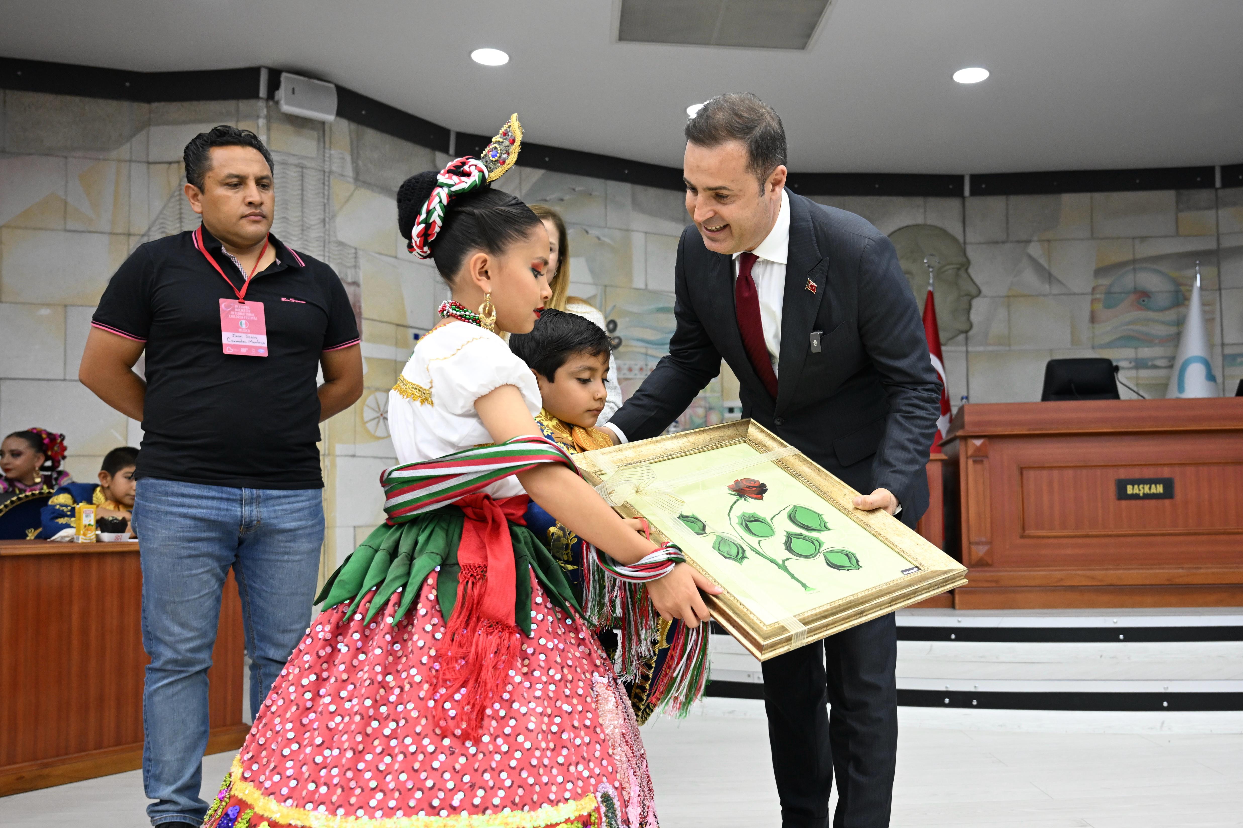 Ziyaret, karşılıklı hediye takdiminin ardından toplu fotoğraf çekimi ile sona erdi. Ardından Belediye binası önünde çocuklar, kendi ülkelerinin dans gösterilerini sergiledi. Gösteriyi büyük bir ilgi ile izleyen Başkan Akın, çocukların neşesine ortak oldu. Öğrencilerin performansı, kendilerini izleyen vatandaşlardan da büyük alkış aldı.