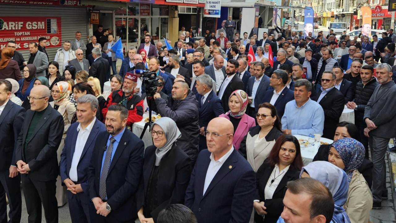 AK Parti Balıkesir İl Başkanlığı önünde Ramazan Bayramı dolayısıyla düzenlenen bayramlaşma programı, partililerin yoğun katılımıyla gerçekleşti.