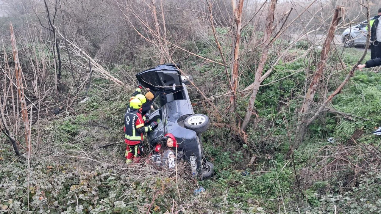 Edinilen bilgilere göre, 10 KD... plakalı otomobil, henüz bilinmeyen bir nedenle sürücüsünün direksiyon hâkimiyetini kaybetmesi sonucu şarampole devrildi.
