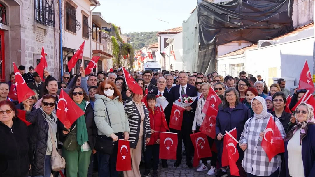 91 yıl önce, bugün Ayvalık’ı ziyaret eden, kentimizi ve hemşehrilerimizi ziyaretiyle onurlandıran ve bizleri bugün o anlamlı ziyareti nedeniyle gururlandıran Ulu Önder Mustafa Kemal Atatürk’ün güzergâhından yürüyerek halkın karşısına gelmekten büyük bir mutluluk duyuyorum.