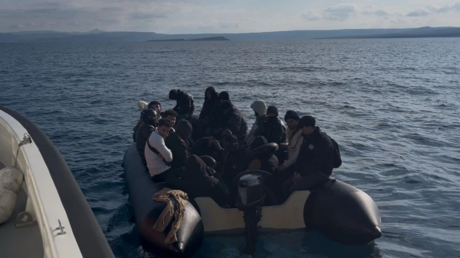 Lastik botta aralarında kadınların da bulunduğun 20 düzensiz göçmeni yakalayan ekipler, göçmenleri Cunda Adası’ndaki Sahil Güvenlik Komutanlığı’na getirdi.