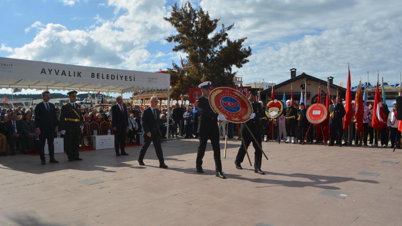 Ayvalık Kaymakamı Hasan Yaman, Garnizon Komutanı Personel Albay Hüseyin Aydın, Belediye Başkanı Mesut Ergin ve İlçe Cumhuriyet Başsavcısı Mehmet Fatih Acemoğlu’nun öncülüğünde gerçekleşen törene; daire amirleri, gaziler, siyasi partilerle sivil toplum kuruluşlarının temsilcileri, öğretmenler, öğrenciler ve kalabalık bir vatandaş topluluğu katıldı.