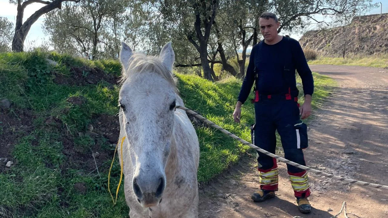 Atın su kanalından çıkmayı başaramadığını gören vatandaşların ihbarıyla olay yerine Ayvalık İtfaiye Grup Amirliği bünyesindeki bir ekip geldi.