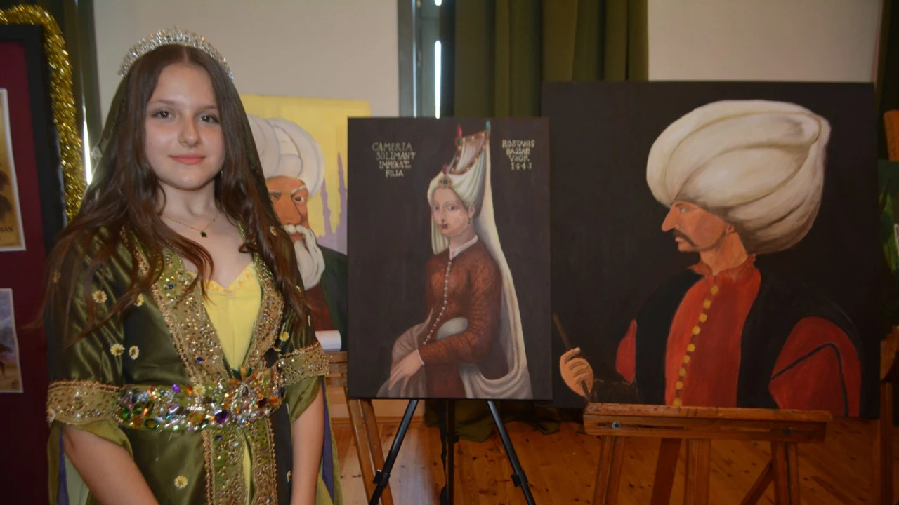 Mihrimah Sultan’ı canlandıran Almina Kanap isimli öğrenci, “Mihrimah Sultan, Kanuni Sultan Süleyman ve Mimar Sinan’ı canlandırdık” ifadelerini kullanarak, Mihrimah Sultan hakkında bilgiler verdi.