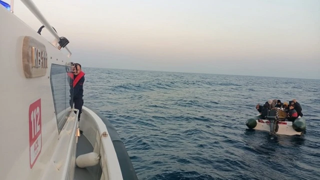 KB-111 isimli Sahil Güvenlik Botu tarafından durdurulan beraberinde 4 çocuğun bulunduğu 14 düzensiz göçmen ele geçirildi.