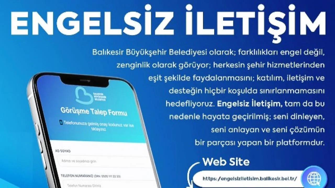 Balıkesir Büyükşehir Belediyesi, herkes için eşit ve erişilebilir bir yaşam anlayışı için hizmetlerini çeşitlendirmeye devam ediyor. Bu kapsamda işitme ve konuşma engeli bulunan vatandaşların belediye ile olan iletişimlerini sağlamak için arama motoruna https://engelsiziletisim.balikesir.bel.tr/ adresi yazılarak başvuru sayfasına giriş yapılacak. Vatandaşlar, açılan sayfada ad, soyadlarını yazdıktan sonra iletişim numaralarını belirtilen kutucuğa yazacaklar. Başvuru sahibi özel gereksinimli bireyler, görüşmek istedikleri konuyu yazarak ileri bir tarihe randevu almak için ilk kutucuğu işaretleyebilecekler. KVKK anlaşma metnini ve “Ben robot değilim” kutularını işaretledikten sonra “Talebi gönder” butonuna tıklayan vatandaşlar başvurularını kısa sürede tamamlayabilecekler. Ana sayfada yer alan “Görüşmeye Başla” butonuna tıklayan özel gereksinimli bireyler, işaret dili tercümanı desteğiyle taleplerini belediyeye ulaştırabilecekler.