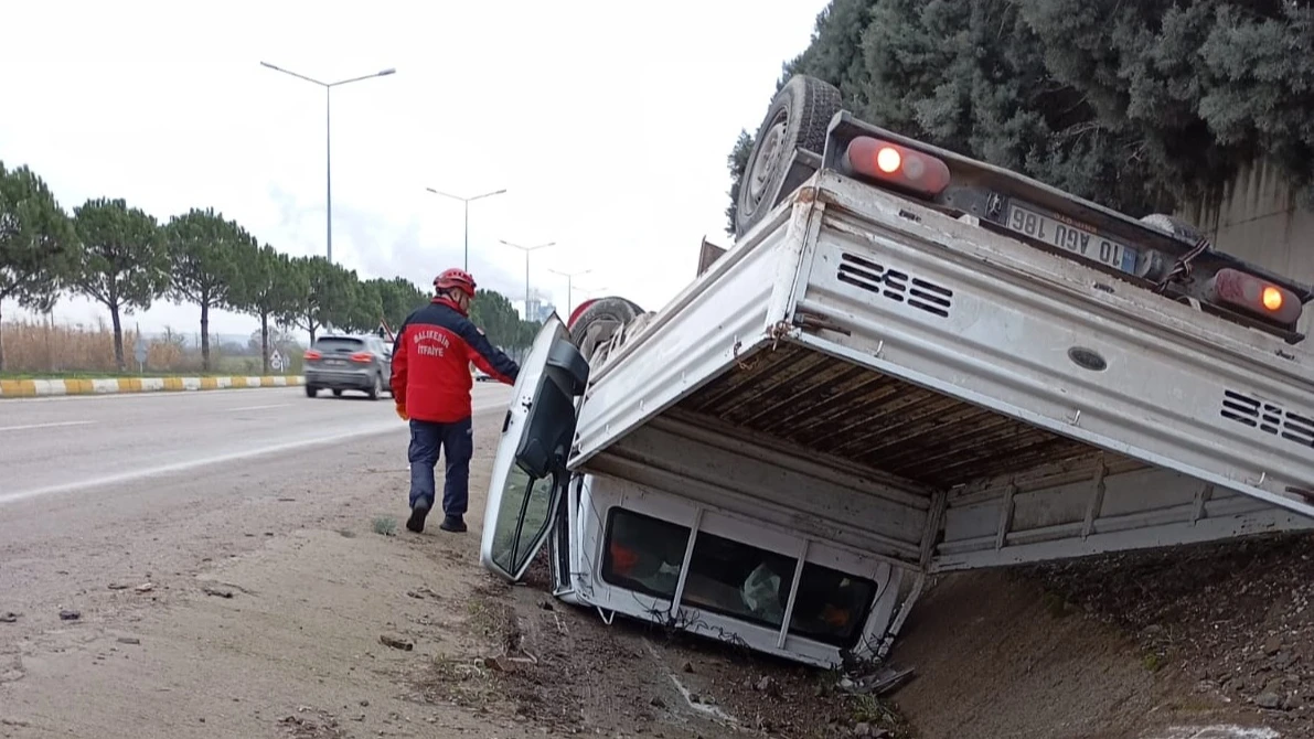 10 AGU 186 plakalı kamyonet, kontrolden çıkarak ters döndü. Kazayı görenler, hemen 112 Acil Yardım hattını arayarak durumu bildirdi.