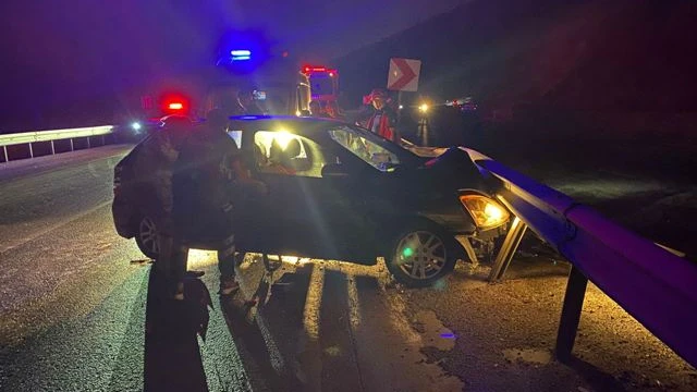 Edinilen bilgiye göre, kaza Balıkesir-Bursa karayolu Yücel Et yakınlarında meydana geldi. 35 AD 3568 plakalı otomobil, bilinmeyen bir nedenle direksiyon hakimiyetini kaybederek orta refüjdeki demir korkuluklara çarparak durdu.