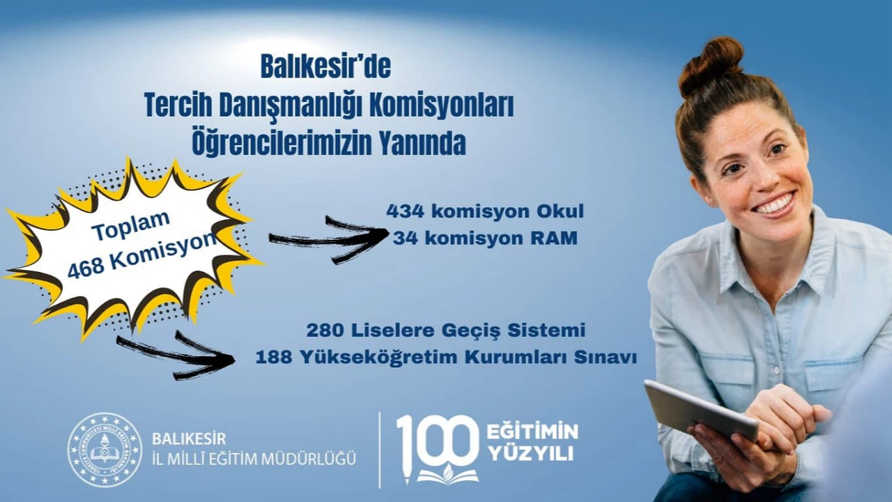 2025 tercih döneminde öğrencilerin doğru ve bilinçli tercihler yapmalarını desteklemek amacıyla Balıkesir genelinde 20 ilçedeki okul ve kurumlarda toplam 468 adet Tercih Danışmanlığı Komisyonu oluşturuldu.
