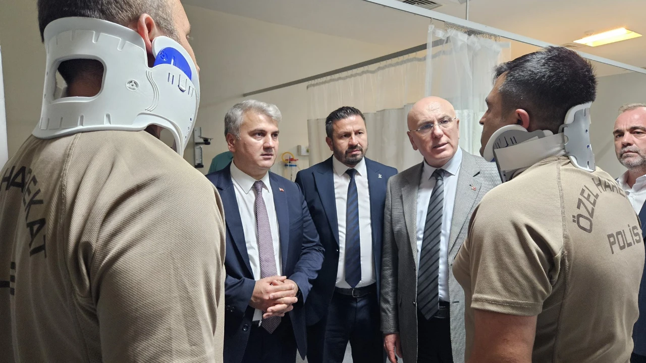 Hastaneye kaldırılan memurları AK Parti Balıkesir Milletvekilleri Mustafa Canbey ve İsmail Ok ile AK Parti İl Başkanı Mehmet Aydemir, ziyaret ederek geçmiş olsun dileklerini ilettiler. Siyasi yetkililer, İl Emniyet Müdürü Hasan Yiğit'ten polislerimizin sağlık durumları ile ilgili bilgi aldılar.