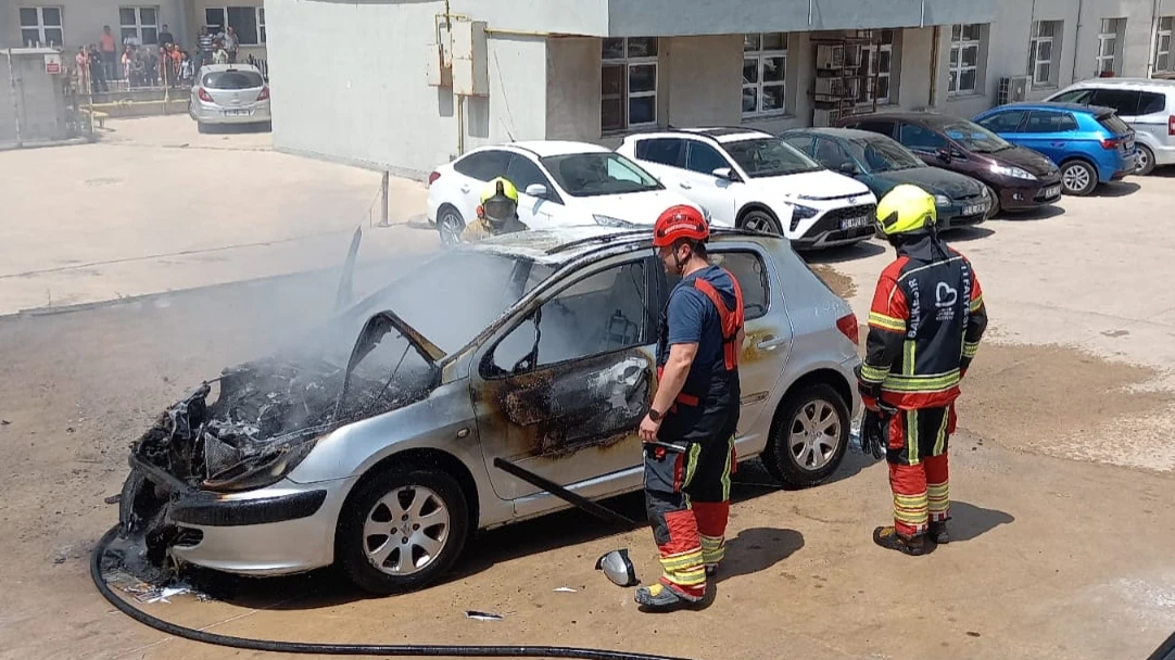 Edinilen bilgiye göre, Bandırma Eğitim ve Araştırma Hastanesi otoparkında park halinde bulunan 16 KHT 97 plakalı araç henüz belirlenemeyen bir nedenle alev aldı.