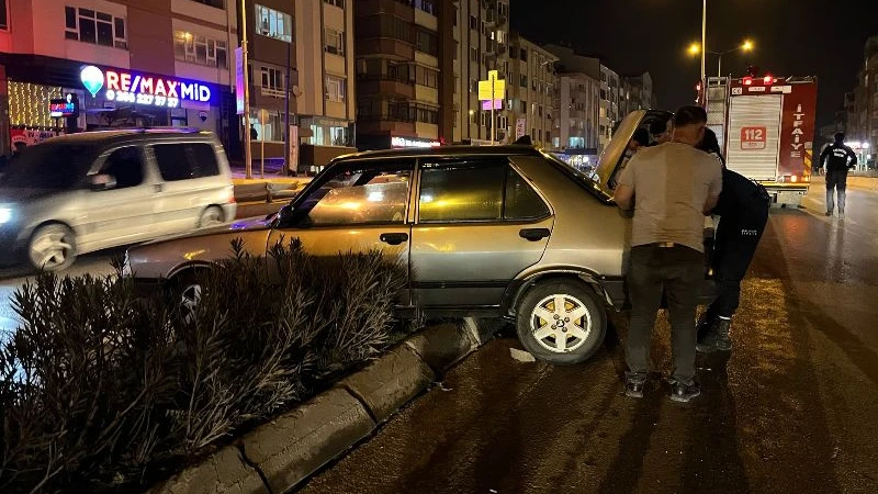 Balıkesir’in Bandırma ilçesinde kontrolünü kaybeden otomobil orta refüje çıktı.