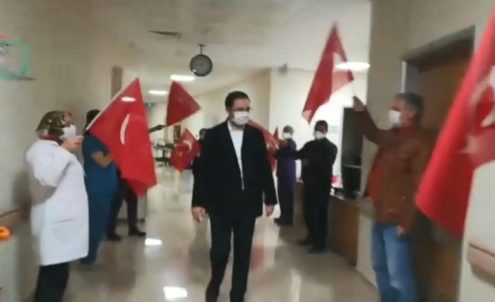 Başhekim Alaybeyoğlu’nun taburcu olduğu esnada tüm sağlık çalışanları hastane koridorunda ellerinde Türk bayrakları ve alkışlarla Başhekimlerini uğurladılar. Başhekim Ferit Alaybeyoğlu taburcu olurken yaptığı açıklamada hastanedeki tüm personele tedavisi süresince teşekkür etti. Alaybeyoğlu ailesini çok özlediğini ve bir an önce onların yanına gitmek istediğini söyledi.