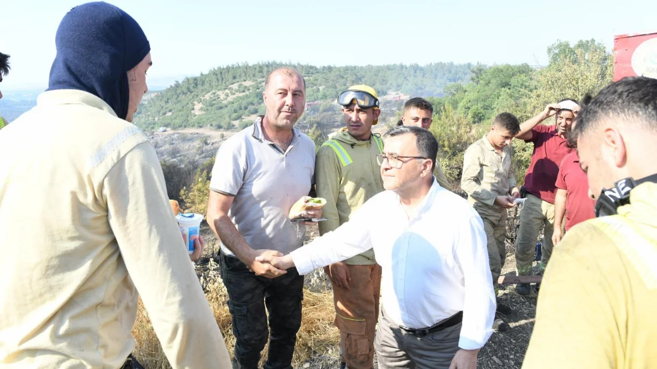 Altıeylül’e bağlı Kirazköy kırsal mahallesinde başlayan ve şiddetli rüzgarın etkisiyle kısa sürede büyüyen yangın, Orman Bölge Müdürlüğü ile Büyükşehir İtfaiye ekiplerinin hızlı ve koordineli müdahalesi sayesinde kontrol altına alındı. Yangının ardından bölgede yürütülen soğutma çalışmalarına katılan Altıeylül Belediye Başkanı Hakan Şehirli, alanda incelemelerde bulundu.