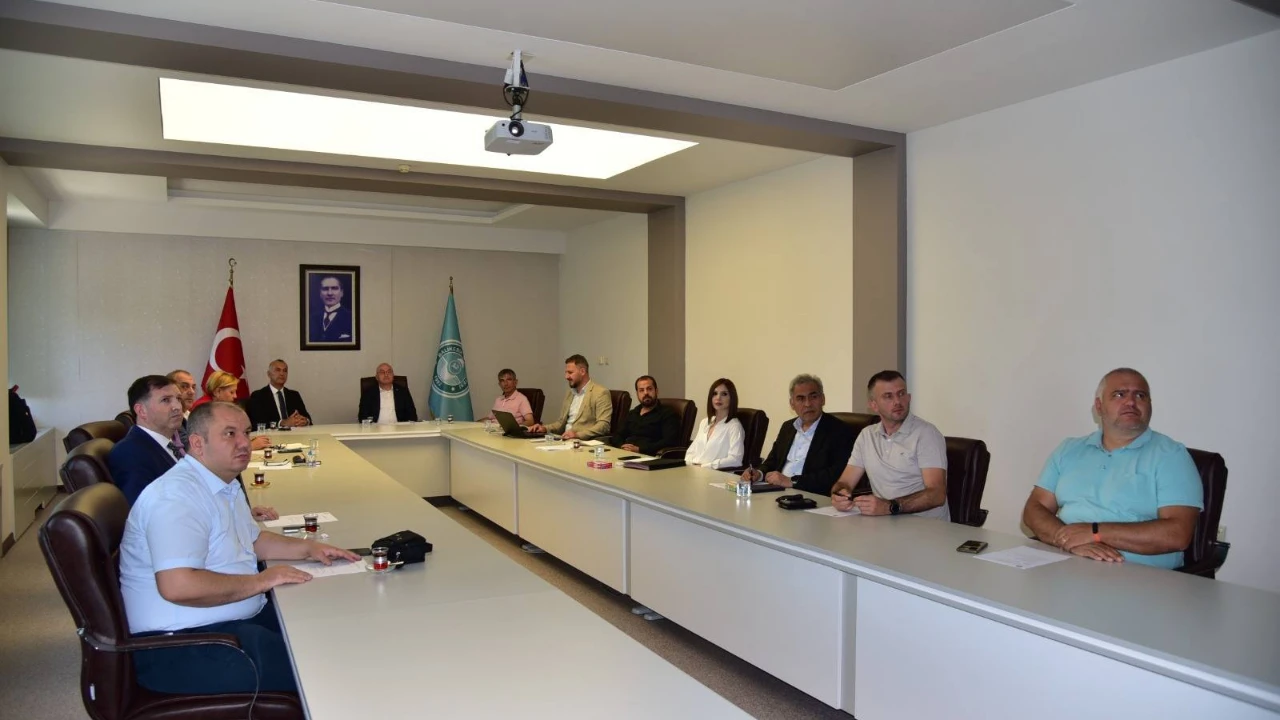 Rektörlük Yönetim Kurulu Salonundaki toplantıda; İş Sağlığı ve Güvenliği Koordinatörü Doç. Dr. Celalettin Çevik ile kurul üyeleri yer aldı.