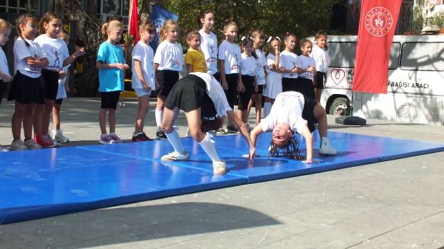 Cumhuriyet Meydanında, İlçe Gençlik ve Spor Müdürü Aslan Alparslan’ın genç sporcularla birlikte anıta çelenk koyması ile başlayan törenlerde, çeşitli spor gösterileri yapılırken, coşku yaşandı.