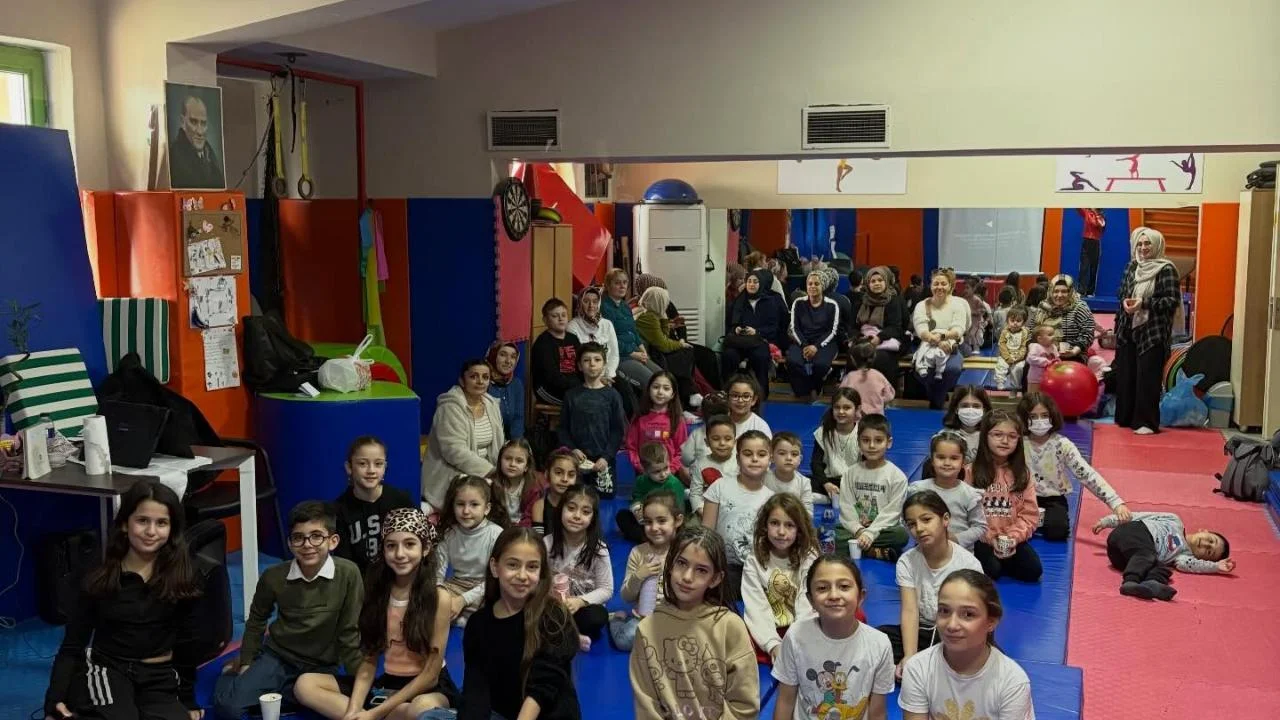 Anneler, çocukları ile birlikte Atatürk Spor Salonunda Pelin Bakır’ın öncülüğünde jimnastik yaptı.