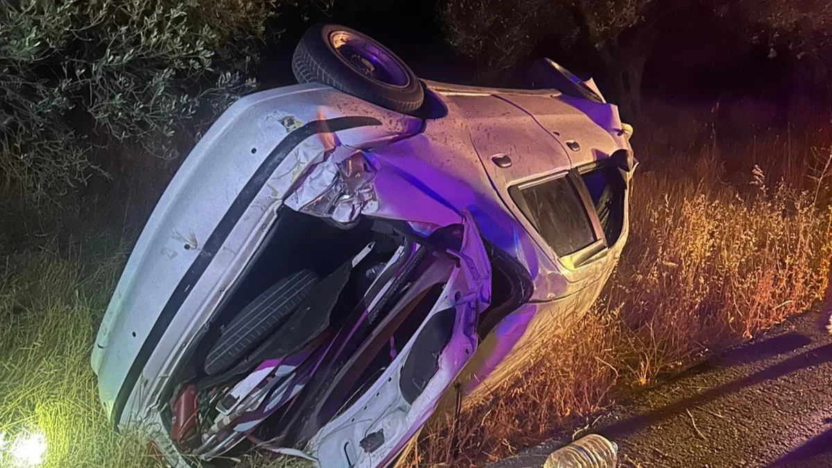 Kazada, M.D. idaresindeki 10 AED 903 plakalı otomobil, yol kenarındaki otluk alana uçtu.