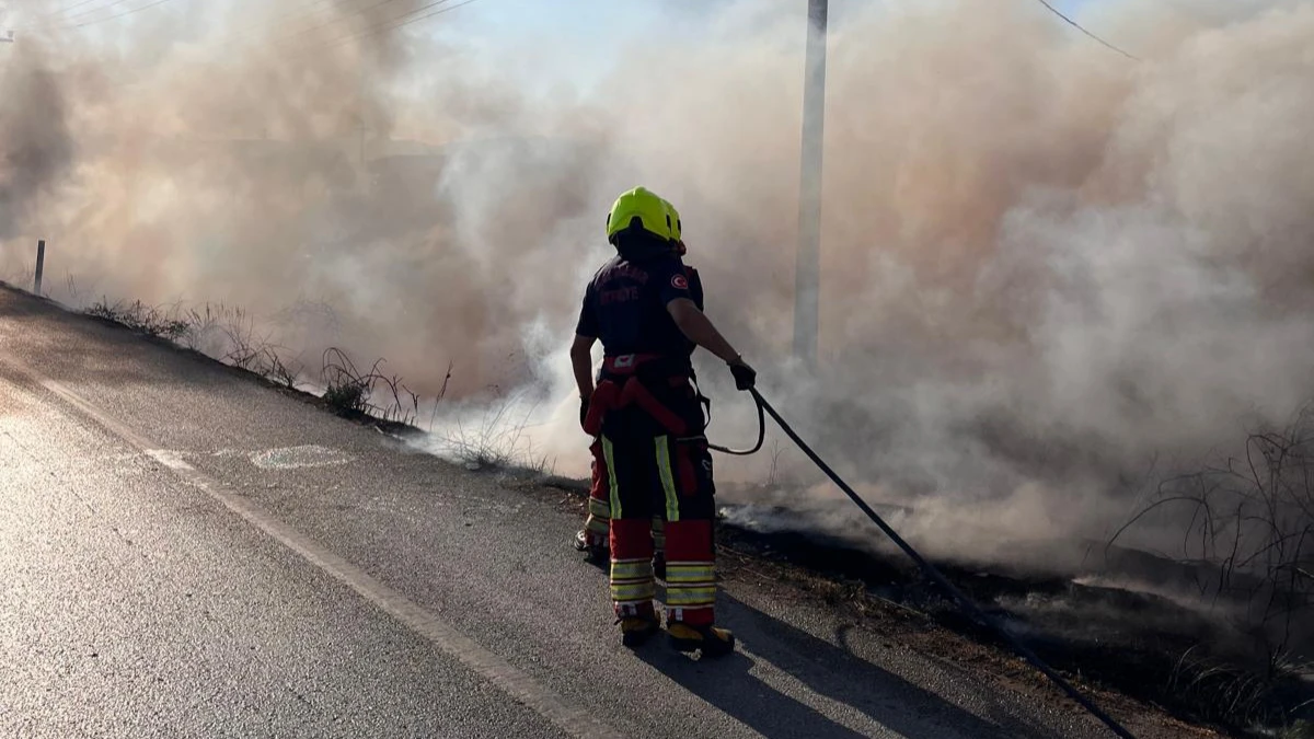 Edinilen bilgiye göre yangın, Balıkesir’in Burhaniye ilçesine bağlı İskele Mahallesinde İzmir - Çanakkale yolu kenarında meydana geldi.