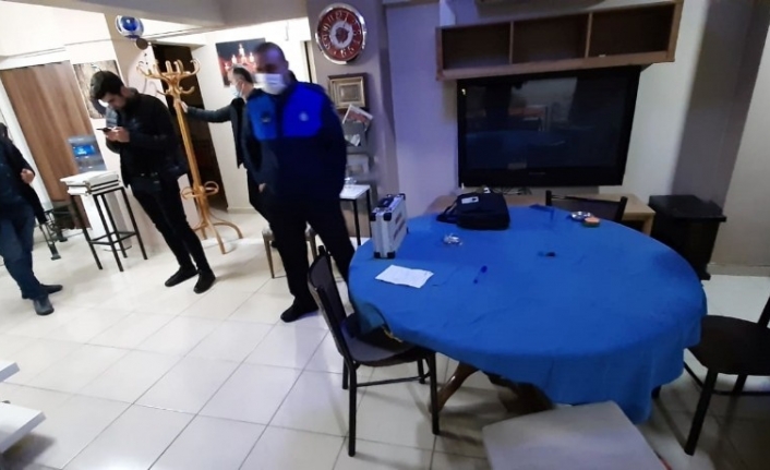 Zabıta ekiplerinin ikinci baskın noktası ise Altıparmak Mahallesi’nde bir emlakçı dükkanı oldu. Baskında emlakçı dükkanının yuvarlak masa ve sandalyeler konularak kıraathaneye çevrildiği tespit edildi. Yapılan aramalarda kumar oynamaya yarayan çok sayıda deste iskambil kağıdı, okey ıstakaları, okey taşları, yaz boz kağıtları ele geçirildi. Zabıta ekipleri tarafından işyeri sahibine Kabahatler Kanunu gereğince ceza kesilirken, işyeri de mühürlendi. Polis ekipleri de oyun oynayan şahıslara idari yaptırım uygularken, iş yeri sorumlusu şahsa ise kumar oynamak için yer ve imkan sağlamaktan işlem yaptı.