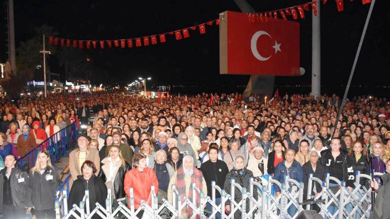 Edremit Cumhuriyet Meydanı’nda Türk bayraklarıyla dalgalanan kalabalık, “Yaşasın Cumhuriyet”, “Yaşasın Mustafa Kemal Atatürk” sloganlarıyla geceye damga vurdu.