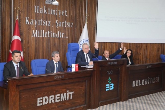Edremit Belediye Başkanı Mehmet Ertaş, “2024-2029 dönemi ilk meclis toplantısını gerçekleştirdik. Edremit’imize, Balıkesir’imize ve ülkemize hayırlı olmasını diliyorum. Katılan tüm meclis üyelerimize, izleyici olarak bulunan vatandaşlarımıza ve basın mensuplarımıza teşekkür ediyorum” dedi.