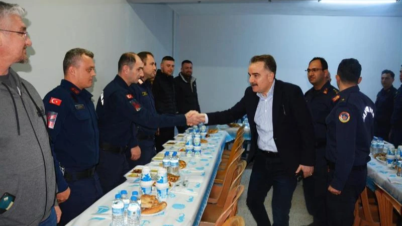 Kaymakam Odabaş, “Sizlerin bu kutsal görev bilinciyle, halkımızın huzur ve güvenliği için gösterdiğiniz fedakarlık takdire şayandır. Bu mübarek ayda sizlerle bir arada olmaktan, aynı sofrayı paylaşmaktan büyük mutluluk duyuyor, görevlerinde başarılar diliyorum,” dedi.
