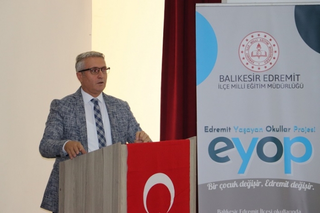 Edremit İlçe Milli Eğitim Müdürlüğünün yürüttüğü EYOP “Edremit Yaşayan Okullar “ Projesinin okullarda yapılan çalışmalarını gösteren okul sunumları kısmı gerçekleştirildi. Balıkesir Büyükşehir Belediyesi Edremit Gençlik ve Kongre Merkezinde gerçekleştirilen program ile 2023 yılında yaz tatili döneminde okullarımızı daha yaşanır işlevsel hale getirmek için yapılan çalışmalar okulların sunduğu videolar ile izlendi. İlçe Milli Eğitim Müdürü Yaşar Ciğer programda bir konuşma yaparak EYOP projesinin amacına ulaştığını, okullara bir hareket getirdiğini, çalışmaların devam edeceğini belirterek, güzel çalışmalar için kurum müdürlerine teşekkür etti.