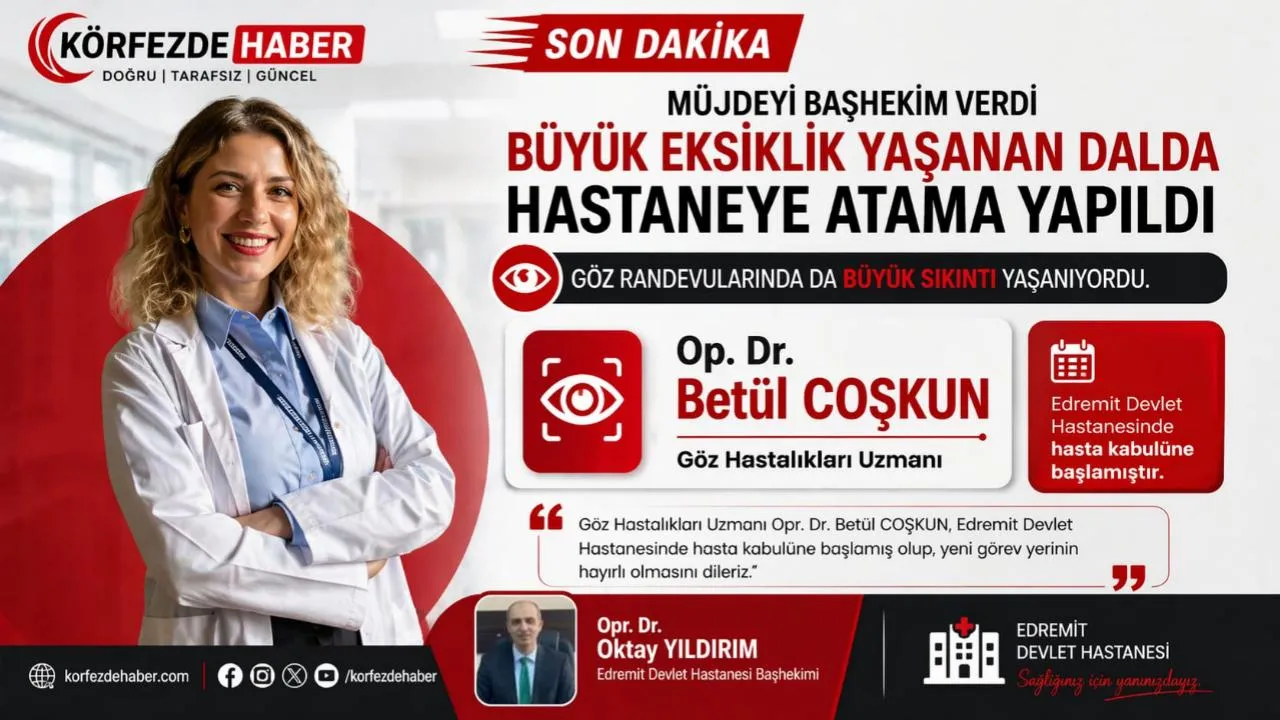 Edinilen bilgilere göre, Edremit Devlet Hastanesi bünyesinde yaşanan göz randevusu sıkıntısının giderilmesi amacıyla bakanlık tarafından atanan Göz Hastalıkları Uzmanı Opr. Dr. Betül Coşkun'un göreve başladığı açıklandı