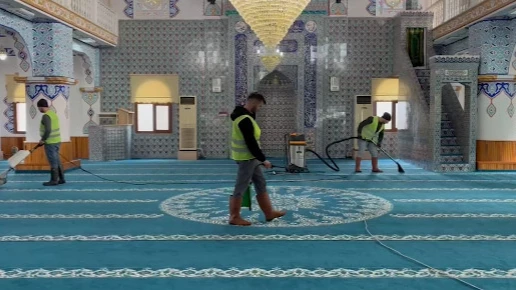 Temizlik ekipleri, cami halılarında hijyen sağlamak amacıyla kapsamlı bir yıkama işlemi gerçekleştirdi. Yıkama işlemleri, Ramazan ayında ibadetlerin daha sağlıklı ve huzurlu bir ortamda yapılabilmesi için büyük bir titizlikle yapıldı.