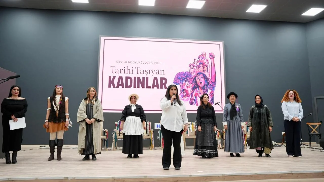 Program, tarihe yön veren kadınların mücadelesini sahneye taşıyan “Tarihi Taşıyan Kadınlar” adlı tiyatro oyunuyla başladı. Kadınların tarih boyunca verdiği mücadeleyi anlatan oyun, izleyicilerden büyük beğeni aldı ve salonda duygu dolu anlar yaşandı.