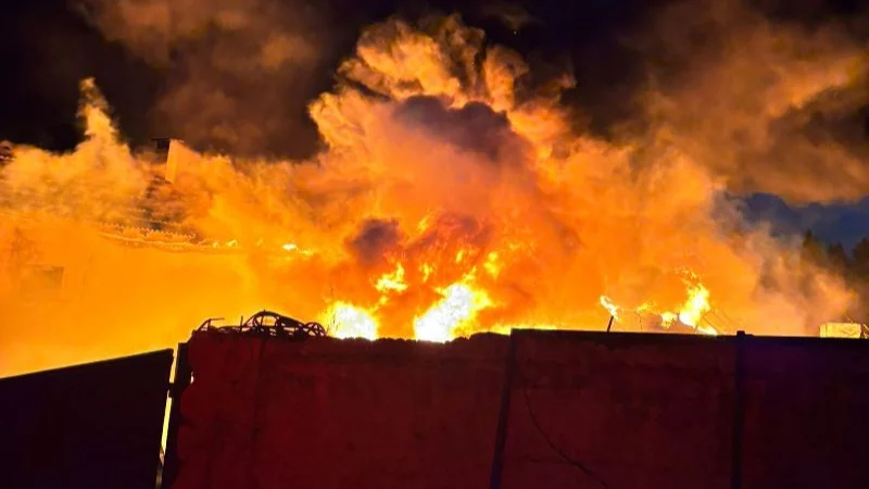 Gömeç İlçesi Karaağaç Mahallesi hurdalıkta akşam saatlerinde çıkan yangın bir anda büyüdü.