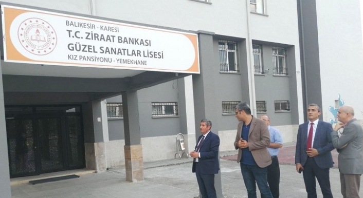 Ali Tatlı; İl Milli Eğitim Müdür Yardımcıları Mustafa Uras ve Hüseyin Aşık eşliğinde, T.C. Ziraat Bankası Güzel Sanatlar Lisesi Kız Öğrenci Pansiyonunun bölümlerini ziyaret ederek incelemelerde bulundu.