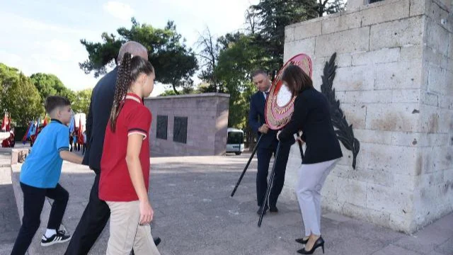 Saygı duruşu ve İstiklal Marşı'nın okunmasıyla başlayan törende İl Millî Eğitim Müdürü Murat Demir, Atatürk Anıtı'na çelenk sundu.