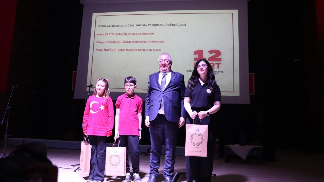 Günün anlam ve önemini belirten konuşmada, Mehmet Akif Ersoy’un "Allah bu millete bir daha İstiklal Marşı yazdırmasın" sözü hatırlatılarak, milli marşımızın Türk milletinin bağımsızlık azminin sönmez bir meşalesi olduğu vurgulandı.