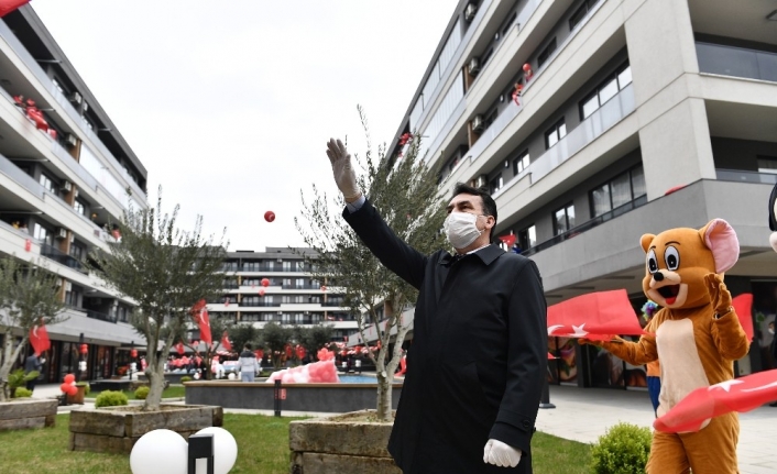 Belediye tarafından yaptırılan Soğanlı Kentsel Dönüşüm Sitesi’ni bayraklar ve balonlarla donatan Osmangazi Belediye Başkanı Mustafa Dündar, çizgi film kahramanları ile birlikte çocuk şarkılarına eşlik edip, yüzlerce balonu gök yüzüne bıraktı. Bursa’nın Osmangazi Belediyesi, korona salgını nedeniyle sokağa çıkamayan çocuklar ve öğrencilerden gelen mesajlar üzerine harekete geçerek 23 Nisan’ı buruk kutlamamaları için onlara özel bir sürpriz yaptı. Osmangazi Belediyesi tarafından yaptırılan Türkiye’nin örnek kentsel dönüşüm projelerinden olan Soğanlı Mahallesi’nde meydan ve balkonları Türk bayrakları ile balonlarla süslendi. Müzik sistemi ve çizgi film karakterleri ile çocukların 23 Nisan Egemenlik ve Çocuk Bayramı’nı coşku ile kutlamalarını sağlandı. Balkonları ortak kullanım alana bakmayan çocuklar ise maske takıp anne ve babalarıyla kutlamalara katıldı. Renkli görüntülere sahne olan etkinliğin ev sahibi Osmangazi Belediye Başkanı Mustafa Dündar, ’ Geçen senelerdeki gibi yan yana olamadık. Ama, neşemizden, sevgimizden, coşkumuzdan hiçbir şey kaybetmedik. Sevgili çocuklar yarınlar sizin, egemenlik kayıtsız şartsız milletindir’ şeklinde konuştu.
